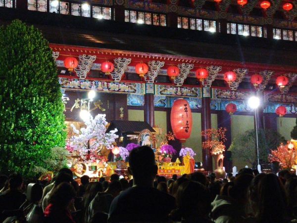 圖說7:新春鐘響,干戈永息。胡一虎於佛光山合十祈願,為世界祝福和平安樂。