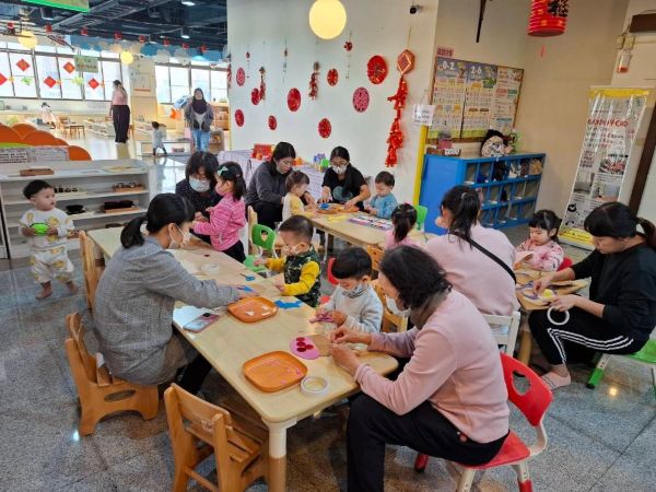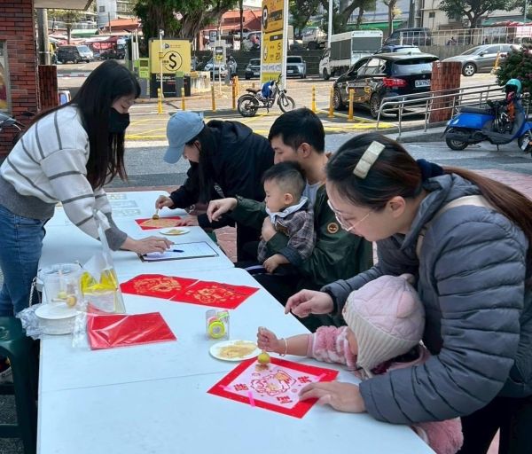 圖4.大小朋友一起到小港親子館製作春節藝術作品 。