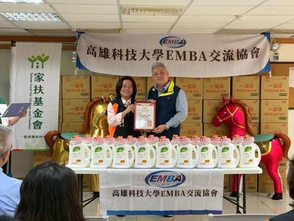 【記者吉雄世/高雄報導】生活中的一滴清潔,對多數家庭而言或許平凡無奇,但對資源有限的家庭來說,卻是一筆實實在在的開銷與負擔。高雄科技大學EMBA交流協會於南高雄家扶中心舉行公益捐贈儀式,由EMBA理事長、興農股份有限公司董事總監劉雲松先生以個人名義自費購買並捐贈500罐「一滴淨天然有機洗衣露」,將透過南高雄家扶中心轉贈予經濟弱勢家庭,為家庭生活帶來一份貼近需求的支持與溫暖。