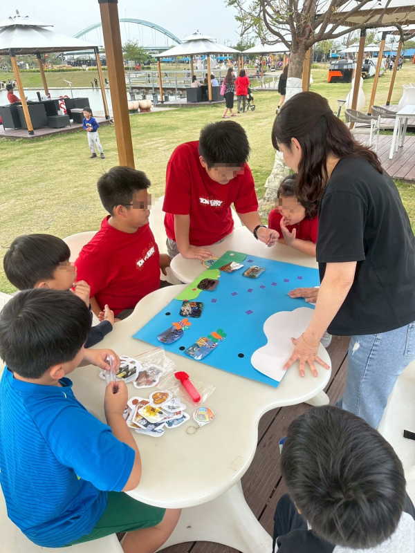 圖3:宥榛在兒少保護宣導活動中帶領孩子與家長進行互動遊戲,透過親子活動增進關係,也在過程中陪伴孩子學習如何規劃安全的出遊行程與準備所需物品,為家庭留下難得的正向回憶。(台灣世界展望會提供)