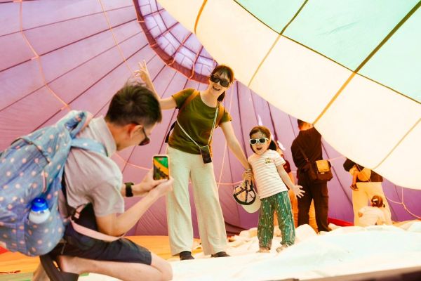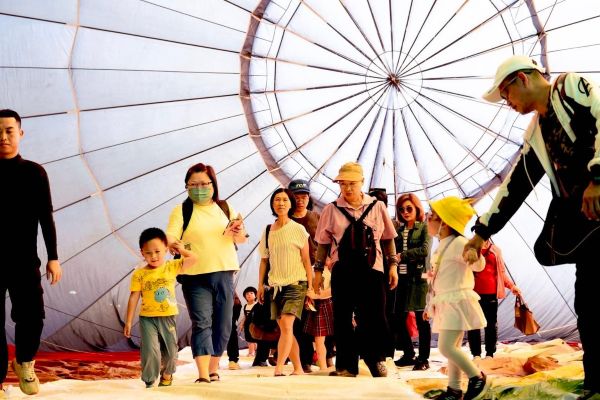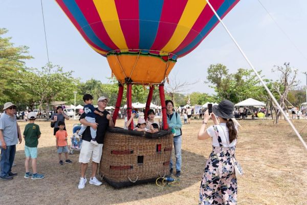 活動首日一早就吸引許多家庭到場踏青、欣賞色彩繽紛的熱氣球,現場還可走進熱氣球近距離體驗、拍照打卡,現場除展示多款熱氣球裝置藝術外,還有市集活動,不少人坐在草地上休憩、聊天,享受悠閒的戶外時光,氣氛熱鬧且充滿活力。