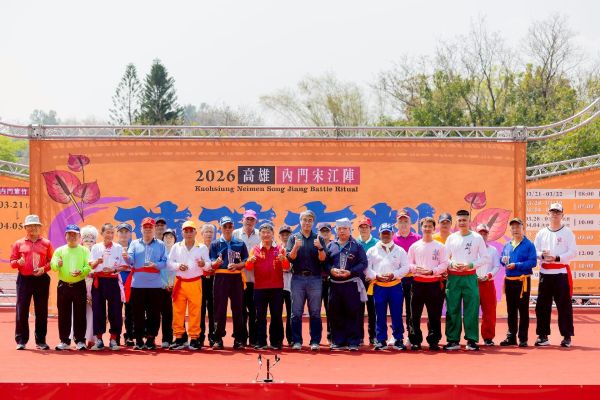 【記者吉雄世/高雄報導】民眾引頸期盼年度盛會,「2026高雄內門宋江陣」3月21日於內門紫竹寺熱鬧登場!來自內門在地24組文武陣頭盛大集結,以最高規格古禮「青刀巷」列隊迎賓,為活動揭開序幕。開場由「宗興武藝創意宋江陣」、「中埔埤仔墘宋江獅陣」及實踐大學高雄校區越南學生組成的宋江陣隊伍帶來精彩尬陣演出,並由副市長李懷仁進行文武陣頭總點名並頒發藝陣薪傳獎,肯定在地陣頭傳承宋江陣文化的貢獻。活動在李懷仁副市長、內門紫竹寺主委劉銀城與觀光局長高閔琳依序敲鑼後正式宣告開幕;歡迎大家來鬥陣看熱鬧、吃辦桌、齊遶境、遊內門,為期3週,共16天的精彩活動,將帶給大家最豐富的內門在地節慶體驗。