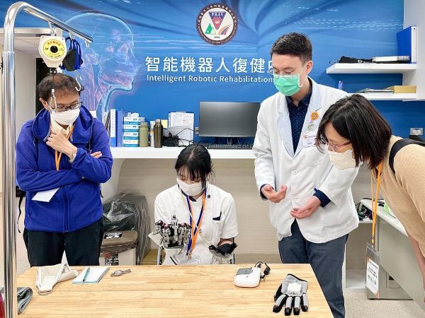 該參訪主要以復健科與影像醫學科的臨床實務為核心進行雙方經驗對話,在復健科職能治療組長王為恩及物理治療師陳浩的引導下走訪「智能機器人復健中心」。現場特別針對各項高科技復健設備進行介紹,並安排實機操作示範,讓學生們近距離觀察及體驗機器人技術如何精準協助病患復能,展現本院智慧醫療的臨床特色,日方同學在體驗機器人復健的技術後皆表驚奇,也與目前日方的機器人復健技術做比較,雙方醫療技術交流熱絡,顯見台日教學與臨床實務交流的重要性。