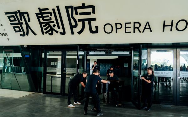 圖2:工作人員送走舊公共鋼琴。攝影 陳建豪,衛武營國家藝術文化中心提供