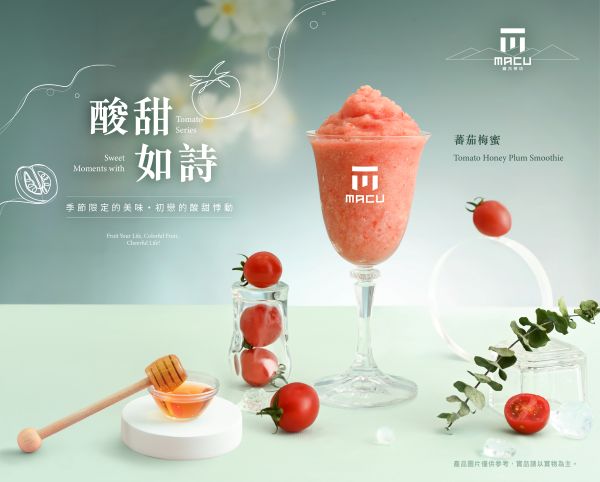 以現打蕃茄細冰沙為基底,每一口都能喝到果肉的鮮甜,加入麻古獨家梅汁,微鹹梅韻完美襯托飲品的風味,最後以淡淡的蜂蜜甜味收尾,讓整體口感更加圓潤,是一款酸甜表現清晰、層次分明的清爽型飲品。