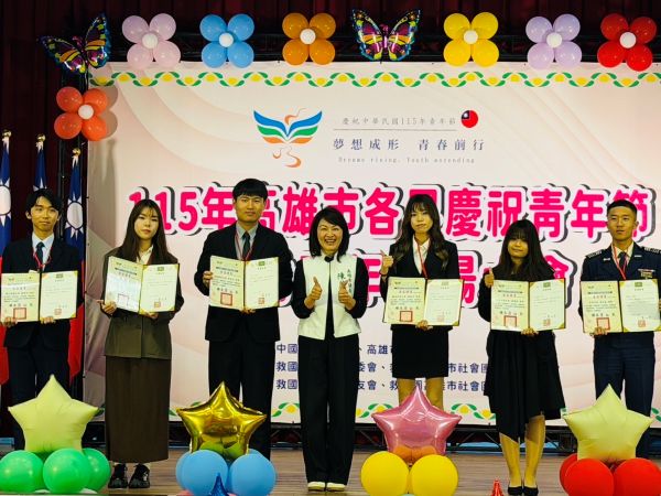 【記者吉雄世/高雄報導】115年高雄市各界慶祝青年節「優秀青年表揚大會」於3月28日上午10時假高雄市立空中大學玫瑰廳隆重舉行。現場貴賓雲集,包括高雄市議員、立法委員均派代表參加、輔英科大副學務長高永男、忠孝國中校長鍾文杰、高雄市慈善團體總會榮譽理事長蘇金樹、高雄市張老師中心總幹事謝璦如、高雄市團委會指導委員林武智、林明道、黃雄鵬、林仁興、公益顧問趙建國、發展委員會會長羅秋殷、諮詢委員會副召集人陳仕雄等人皆到場祝賀,共計近420人參與受獎及觀禮,場面熱烈隆重,讓本屆優秀青年備感榮耀。