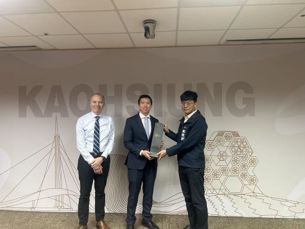 圖2:美國在臺協會高雄分處文化新聞組温宏國組長(中)代表AIT致贈回禮。