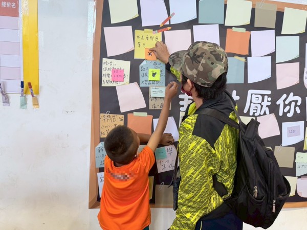 圖3:親子在「我討厭你」牆上,以正向與鼓勵語句取代傷人話語,透過實際行動學習同理與尊重他人。(台灣世界展望會提供)
