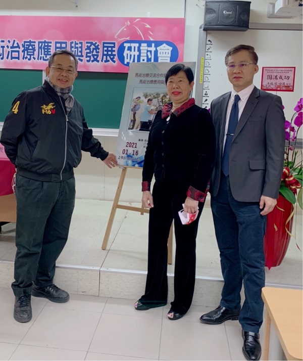高雄醫學大學附設中和紀念醫院院長鍾飲文與致力於馬術治療18年的八卦寮文教基會董事長余政憲及積極投入特殊教育的國立屏東大學校長古源光等人,1月16日在高雄醫學大學校長鐘育志的見證下,三方共同簽署馬術治療交流合作協議。會後並舉行馬術治療應用與發展研討會。促成此次合作的屏東大學老師張茹茵希望未來將醫療器材導入病童的療程檢測評估,讓馬術治療提供更具體的醫學數據。