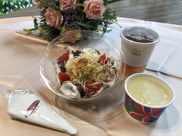 喜憨兒PASTA餐廳的外帶餐點選擇也不少,有鮭魚溫沙拉、松露時蔬奶油義大利麵以及蘿勒香煎雞腿排燉飯等20多種。特別推薦清爽的中卷義式冷麵,新鮮中卷撒上少許黑胡椒後烘烤,口感Q彈鮮美;加入冰鎮後的天使細麵裡,搭配以多樣食材及義式香料為基底的水果莎莎醬,吃起來酸甜滑順,改變您對義大利麵的印象。主食也可改成香煎松阪豬或是雞腿排,清爽的醬汁搭配肉類海鮮主食,炎炎夏日涼感十足無負擔。各式餐點120元起,訂餐電話:07-2234510。