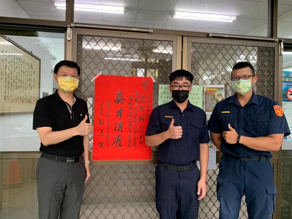 另大同派出所警員張智翔,畢業於東海大學日文學系,103年特考班結業,平日執勤任勞任怨,為了更上一層樓,平時利用勤餘時間念書,順利考取中央警察大學二技行政警察學系。
