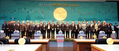 蔡英文總統進一步表示,透過成立國際金融研究學院,臺灣可以培養更多國際資產管理人才,能夠擴大財富管理的業務規模,吸引更多國際機構和資金來到臺灣。接下來,中山大學準備設立「半導體學院」與「學士後醫學系」,祝福中山大學持續茁壯,再創高峰,也期許產官學界一起努力,為臺灣金融發展貢獻心力,創造新的里程碑。