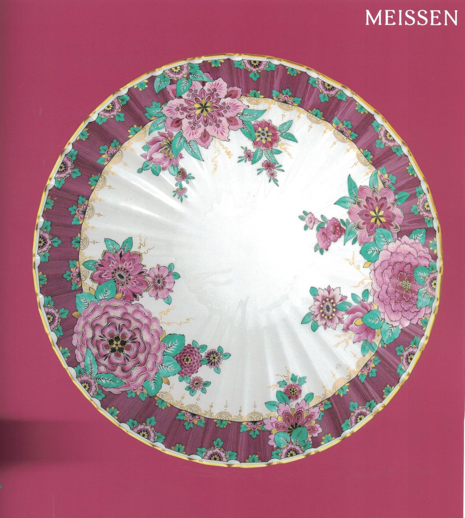 仔細端倪,將發現彩繪是畫在一款製作得很纖薄,且具備規則波紋的圓盤上。盤子的高低起伏肯定會干擾畫家彩繪視覺表現的穩定性,但成果却出人意表的完美。畫家以優雅的佈局,安排或大或小的花卉,展現既穩定又活潑的構圖畫面。