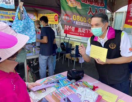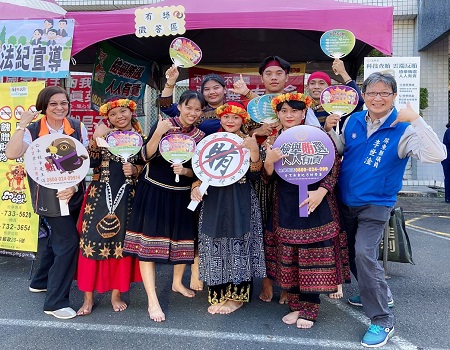 除場內籃球爭霸賽火熱開打中,該署於會場外,檢察長親自帶領潘連坤主任觀護人等同仁設置反賄選宣導攤位,強力宣導「不買票、不賣票」,提醒買票跟賣票都是犯罪,並說明「搓圓仔湯」是候選人及參選人間可能的賄選行為,進行寓教於樂的有獎徵答遊戲,青年學子及家長們踴躍答題,讓反賄選及乾淨選舉觀念向下扎根,攜手守護民主家園。