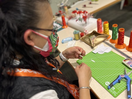 儀式是一種溝通、連結的方式。「看桌(牲)」是敬奉神明的辦桌,也是與神明溝通的方式,擺設包含捏、雕、編、黏等各種工藝技法強調獻藝於神,施予各方有情的慈悲喜捨。而面對自然環境的反思,人神的溝通媒介改變,環保鞭炮、電子香爐也順應展陳。最後,主殿旁的集會所內辦理手作體驗活動,結合社區工藝與臺灣綠工藝希望工程,以銀髮族、弱勢者為對象進行工藝體驗的陪伴療癒過程,體現寺廟的社會性,讓民眾了解寺廟角色的遞衍,在面對社會人口的變遷,集會所從過去交陪娛樂的場域變成社服中心,深刻感知過去與現在氛圍的差異或演化。