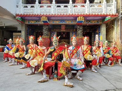 二、八家將:臺灣八家將早年由中國福州地區所引進,清中葉之後發展開來,成為南北各地競相籌組的陣頭,及臺灣民間迎神賽會的要角,主神出巡時,協助緝拿妖魔鬼怪,以求安民保境。雖名「八家將」,但最完整的是13人陣,所以也叫「什家將」或「家將團」。