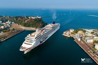 圖3:挪威寶石號(Norwegian Jewel)從高雄港一港口進港。