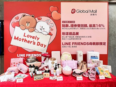 迎母親節 Global Mall屏東市《Lovely Mother’s Day》祭三大歡慶指南 多元回饋最高16%、粉漾禮品展、LINE FRIENDS母親節限定打卡場景