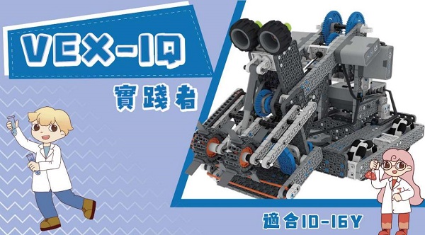 程式與機器人主題2「Vex IQ 機器人營隊」:Vex IQ 機器人營隊鼓勵孩子團隊合作、領導及問題解決,課程以STEM為核心概念,特聘喬智創意機器人專業講師授課,透過課程將學習如何使用圖像指令方塊編寫機器人程式,了解機器人動作的邏輯,初學者可以運用基本知識進行有趣的創造,進階者可以使機器人延伸更複雜的功能,本課程適合各種程度學生加入。
