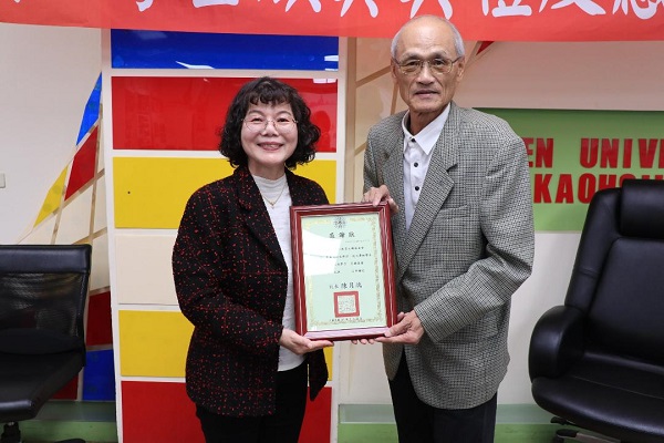 【記者吉雄世/高雄報導】高雄市立空中大學22日舉辦「富仁教育永續基金會大專學生獎助學金頒獎典禮及感恩分享會」,12位家境清寒成績優良學生各獲1萬元獎學金獎勵,陳月端校長及獲獎學生都感謝基金會鄭富仁董事長的慷慨解囊,其中一位重度身障的藍同學雖無法出席,但臥床的她仍堅持以影片表達發自肺腑的感謝,令在場每位人士動容。