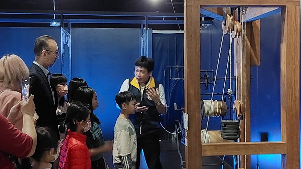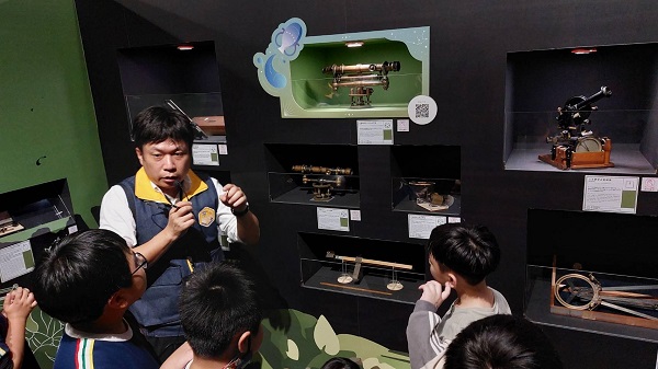 學童們第一天抵達科工館後,首先由科工館李秀鳳館長與台灣三豐儀器股份有限公司日籍前董事長堤佳夫先生親自致贈學習禮物,鼓勵孩子們勇於探索,擁抱科學。隨後,孩子們參觀了6F「星動時刻.量測傳說—量測萬物與星座的探索之旅」特展,透過動手操作度量衡儀器,測試物體的重量、體積與長度,透過互動展示與導覽,了解量測科學原理及其在生活中的應用。接著還參觀了2F「電信@臺灣」展示廳,親手操作早期的電話交換機,模擬如何透過人工轉接完成通話,體驗了一部完整的臺灣電信發展歷史,認識了從電報、海底電纜、公用及家用電話到智慧型手機、最新5G通訊的演進過程。