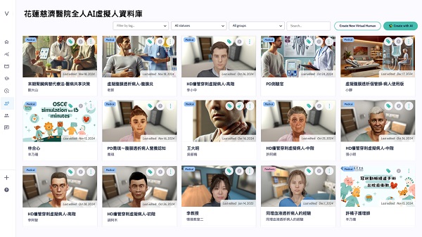 圖三:花蓮慈院導入HTC「AI 虛擬人教案製作平台」後舉辦工作坊,已由醫護人員開發多種不同情境教案,並陸續擴充中。