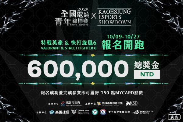 【記者吉雄世/高雄報導】由高雄市政府指導、青年局與運動發展局共同主辦,高雄捷運、中華民國電子競技運動協會、樹德科技大學及正修科技大學協辦的第五屆「全國電競青年錦標賽 x KAOHSIUNG ESPORTS SHOWDOWN」,於10月9日正式開放報名。本屆賽事獲官方指定電競品牌「ROG 玩家共和國」贊助,競賽項目包括《特戰英豪》及《快打旋風6》,每項競賽皆開放256隊報名,參賽選手可獲得150點 MyCard 獎勵,歡迎全台電競好手齊聚高雄,爭取總獎金上看60萬元年度電競榮耀。