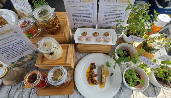 活動現場亦展示出「客家綠食尚創意料理展」,由廚藝學院葉建志老師帶領五專餐飲廚藝科學生以美濃野蓮入菜,以客家惜食廚藝技術,開發一系列兼具文化底蘊與美感創新的料理作品,包括:野蓮香軸・美濃風味雞捲、醬韻交融・梅干菜雞慕斯佐桔醬汁、山林晨曦・紅糟香融盤、章魚野蓮・鹹甜雙奏馬卡龍及客庄披薩・鹹香創意馬卡龍等,並榮獲2025台灣國際廚藝美食挑戰賽(TCAC)四銀一銅佳績,展現高餐大師生以客家食材詮釋永續廚藝的創造力。