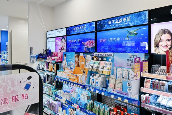 寶雅澎湖北辰店整棟三層樓、超過400坪的門市空間,全面以海藍色調打造沉浸式深海氛圍。天花板懸掛漂浮海龜與海洋生物剪影,營造彷彿潛入海底世界的感官體驗;騎樓燈箱主視覺以寶雅與海龜同行為題,融入澎湖海岸線輪廓,象徵品牌與大自然的共生旅程。店內特設「海洋友善專區」,集結通過環保與永續認證的商品,期望以實際行動推廣「從消費開始守護海洋」的生活態度。海洋限定店不僅是一間零售門市,更是寶雅在海洋永續旅程中的具體印記。