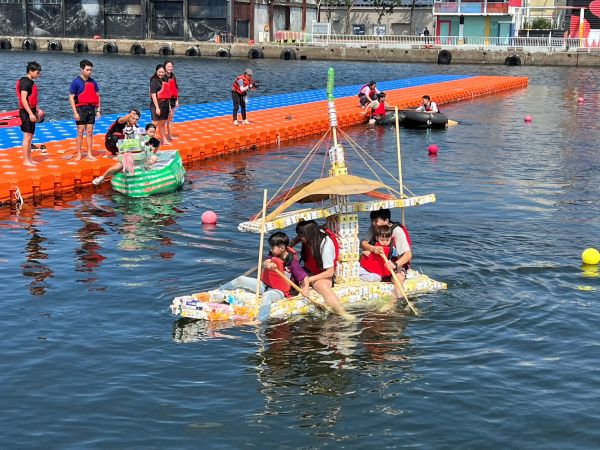 圖說3:〈通通通通撒呼拉在大港橋做環保〉親子組隊,以創意巧思與親子合作展現環保行動力,榮獲本次創意造筏活動「環保永續獎」優選。