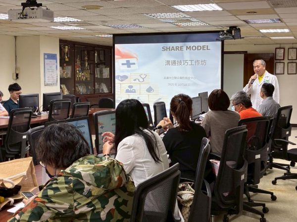 陳盈凱主任指出,過去醫學教育較少著重於病情告知的訓練,加上臨床工作繁忙,醫師平均每3到5分鐘就得看完一位病人,因此需要一套既有效又能快速執行的溝通模式。相較於美國常用的SPIKES病情告知模式過大大約所需1小時,而SHARE模式更重視告知過程中「再保證與情緒支持」的重要性,整個告知過程僅需10至15分鐘,更適用於忙碌的台灣醫療生態。此次工作坊出動9位師資、5位模擬病人,帶領16位不同職類醫護學員進行實戰訓練。工作坊跳脫傳統講課模式,除理論基礎講解外,每位學員有40分鐘實際演練時間,由講師帶領進行互助型團體學習,學員反應熱烈。