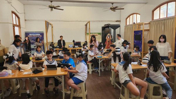 4:高雄大學數位內容設計研究中心自主開發「EWova」沉浸式語言學習平臺,安排代表團前往旗山國小實地了解 XR 技術於跨校教學的應用。
