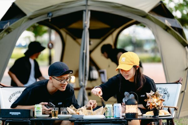 「駁二港邊露營趣」推出不同露營方案供民眾選擇,「懶人帳篷」提供露營基本用具,讓參與者免去準備大型設備的煩惱,輕鬆解鎖野營駁二的全新體驗,翌日還能享用在地人推薦的特色早餐,迎接悠閒的早晨;「自搭帳篷」則提供場地,歡迎自備設備的露營愛好者,打造出專屬個人風格的露營體驗。無過夜需求的民眾,可選擇「計時帳篷」,與好友一同在帳篷包廂內欣賞現場表演、品嚐美食,度過悠閒的露營時光。凡報名指定過夜方案者,還可獲得主視覺周邊套組,或享「似顏繪體驗」,為這場港邊露營留下專屬回憶。