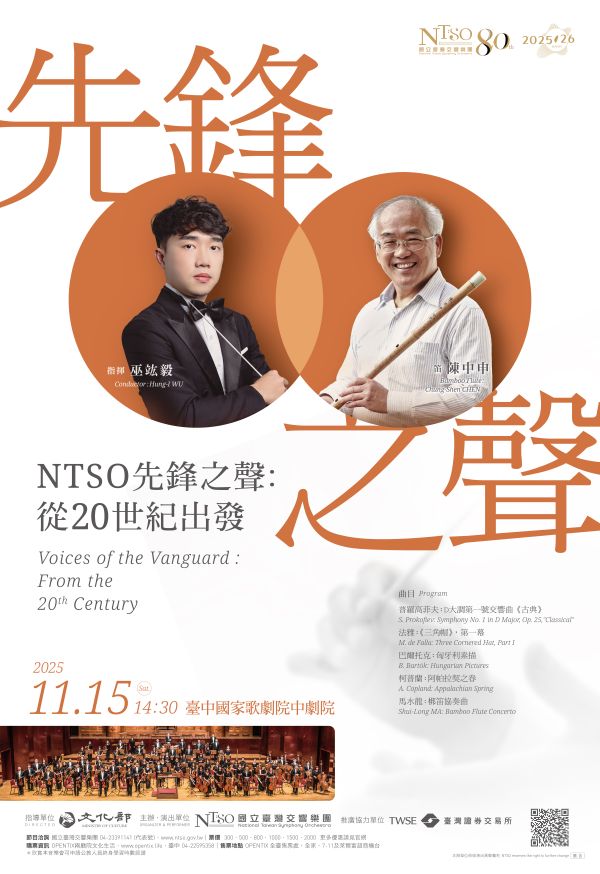 【記者吉雄世綜合報導】NTSO國立臺灣交響樂團將於2025年11月15日(星期六)14:30於臺中國家歌劇院中劇院舉辦《先鋒之聲:從20世紀出發》音樂會。本場演出由指揮巫竑毅領軍,邀請笛演奏家陳中申擔任獨奏,演出內容橫跨歐、美、亞三大地域,從新古典主義到民族現代主義,展現20世紀音樂多元而奔放的創作能量。