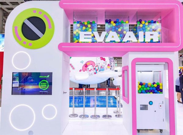 圖說一、二:長榮航空2025年 ITF台北國際旅展以「這個世界就是我的遊樂園」為主軸,搭配Y2K的繽紛色彩打造展場,還特別將Hello Kitty「閨蜜機」打造成空中飛翔的Q版巨型模型機,吸引全場目光!