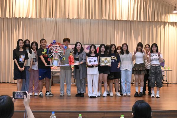 歷經4小時激戰後,五專西班牙文科團隊以「未來之輪」奪冠,作品靈感來自倫敦眼(London Eye)摩天輪,象徵時間與希望,其造型與結構兼具藝術與數理美感。五專英文科A班作品「高流兔」則獲得第二名,他們以高雄流行音樂中心為靈感,融合紙鶴、小船與港灣景緻,展現童趣與地方文化創意。另外,「杜芬舒斯邪惡公司」、「聖誕節限定羅馬競技場」與「跨越時空的對視」等12件作品,也展現學生細膩的創意思維與團隊精神,令人耳目一新。