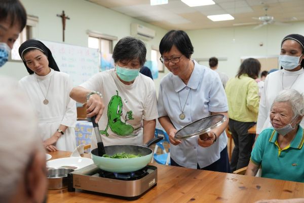 活動現場鍋鏟聲此起彼落,化為動聽的交響樂,阿嬤們個個大顯身手,做起拿手的家常菜,從濃郁的三杯雞、清爽的鹹蛋苦瓜到溫暖的黃瓜魚丸湯,每道料理都承載著每家獨特的家庭故事與生活記憶。壓軸「美食交流時間」將活動氣氛推向高潮,一邊是新住民姊妹的家鄉味,一邊是長輩們的台灣媽媽味,兩條美食線交匯在一張溫馨的餐桌上。聖功醫療財團法人執行長楊儀華修女表示:「聖功修女會是國際修會,服務對象不分種族、年齡與世代。透過料理與陪伴,讓青銀、新住民與社區緊密連結,打造互助共好的關懷網絡,這是最有愛的行動。」