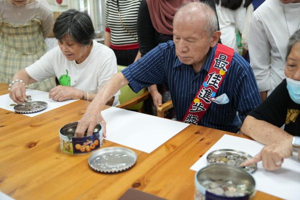 「青銀益智闖關遊戲」是現場最吸睛的焦點。來自文藻大學學生與長輩們組成默契戰隊,共同挑戰『記憶配對』、『音樂接龍』、『創意拼圖』等五大趣味益智關卡,長輩展現不輸年輕人的活力,學生在連連笑聲中體會到跨世代的絕妙默契。更重要的是,學生從長輩充滿韌性與智慧的人生故事中獲得啟發,彼此真誠傾聽與溫暖的陪伴。