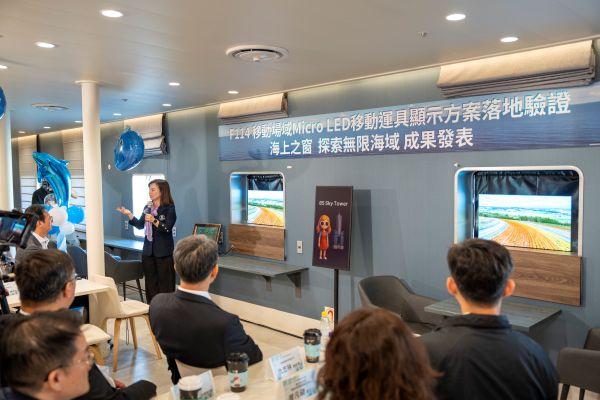 選在富挑戰性的海上運具進行前瞻型顯示技術(Micro LED)功能驗測,除須評估環境場域條件進行機構調整,更須因應海上航行與窗邊(半戶外環境)強化抗震、耐高溫等規格防護。在經濟部產業發展署、資策會數轉院與國立中山大學產發中心協助串接下,新一智能與友達光電於113年底將Micro LED顯示產品導入澎湖輪先行驗證硬體與產品性能,後於今(114)年鏈結澎湖輪發展需求,以「互動海上之窗」為概念將Micro LED透明顯示器結合航程導覽,讓船窗賞景變得更生動有趣。新一智能表示,Micro LED與AR技術的融合是提升海上交通服務創新的重要推手,此次與澎湖輪共同合作的智慧移動顯示應用方案將成為智慧海運與智慧旅遊的示範標竿,進一步挖掘更多Micro LED的潛力商用場景,協助技術商透過環境驗測與場域回饋持續對準市場需求優化產品,持續挖掘產品擴散潛力與商機。