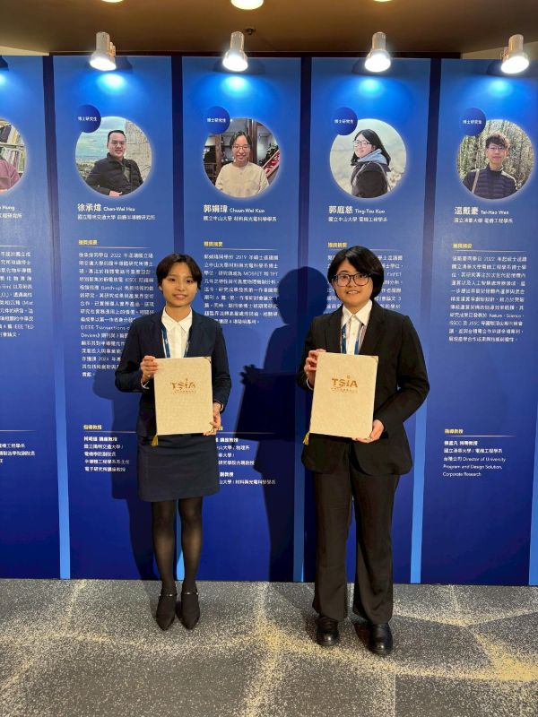 圖1:中山大學光電科學學系郭娟瑋(左起)與電機工程學系郭庭慈雙雙榮獲TSIA 2025半導體獎博士研究生類殊榮。