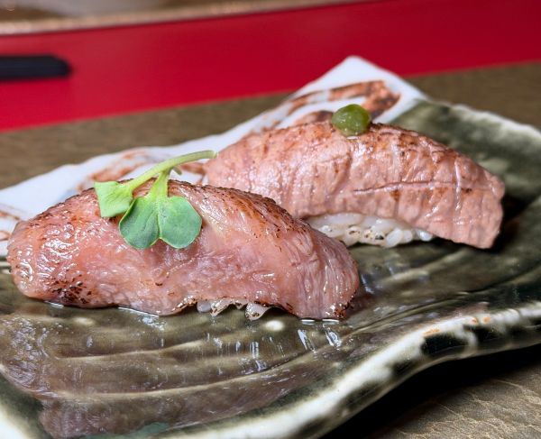 圖說7:「和牛炙燒壽司」二貫,分別以醬油與味噌調味後輕炙。(圖/ JR東日本大飯店台北)