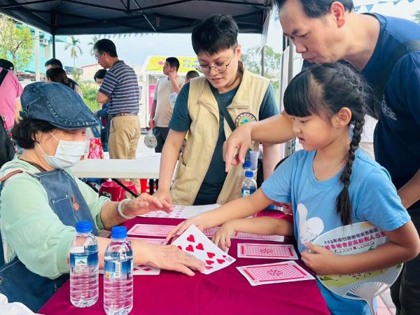 舞台之外,校園草地化身為青銀市集與互動場域,規劃「青銀合作賽」,邀請65歲以上長輩與家人組隊挑戰夾氣球闖關;「青銀智多星」則由長輩帶領民眾體驗兒時丟沙包遊戲,讓傳統童玩成為世代交流的橋梁。