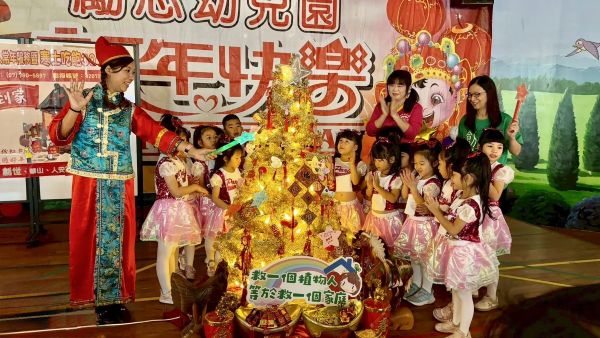 愛心校園亮起來 希望樹滿載祝福 財神爺攜幼童助「寒士吃飽30」