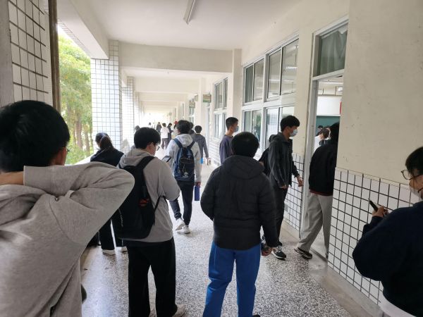 圖2:考生魚貫進入教室準備應考。
