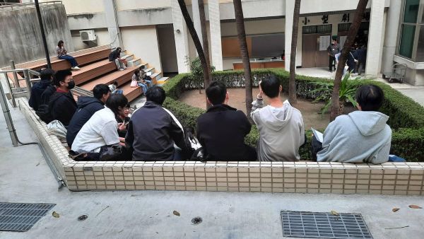 圖2.考前應考生於小型劇場新設置階梯上做最後衝刺。