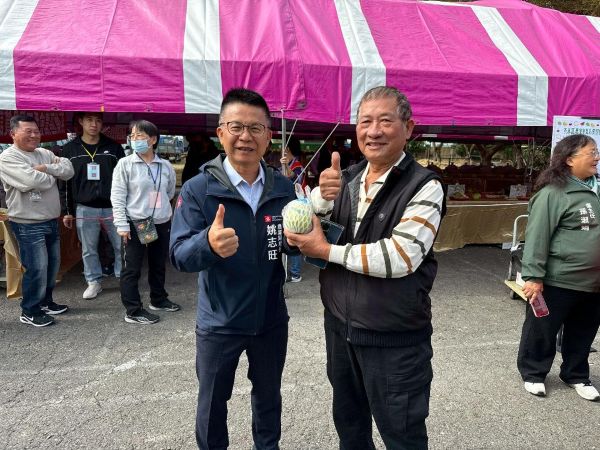 圖4::高雄市政府農業局長姚志旺(左)與芭樂棗冠軍謝萬生農友(右)合影。