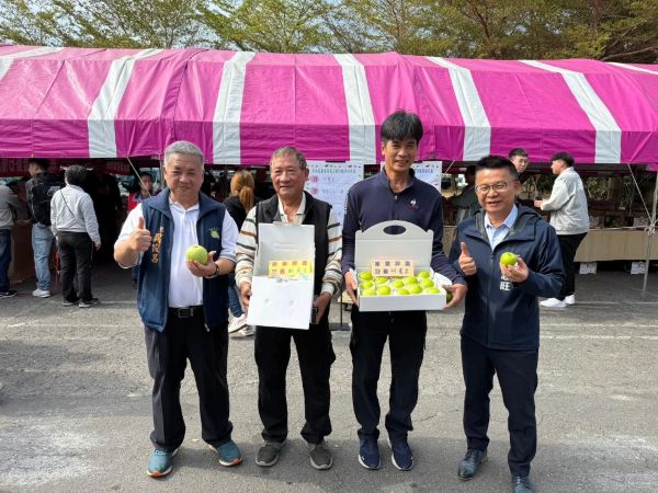 圖5:(由左至右)燕巢區農會總幹事吳俊昌、芭樂組冠軍謝萬生、蜜棗組冠軍林憲昌、高雄市政府農業局長姚志旺。