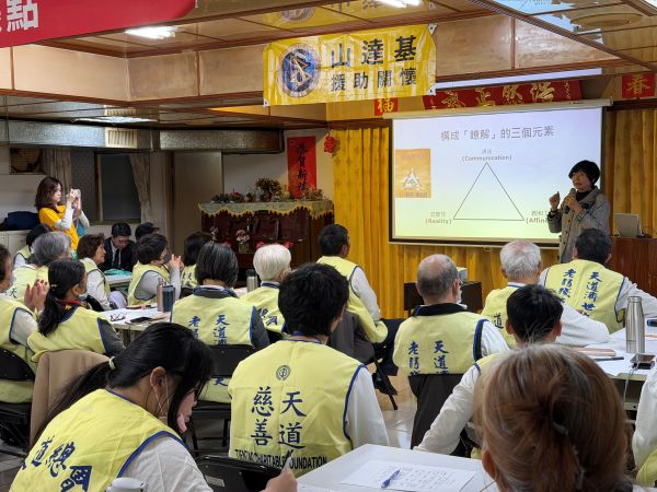 接軌國際 SDGs,實踐現代版「禮運大同」 天道總會領導前人黃庚申、天道慈善基金會榮譽顧問洪那雄、南區道務總召江乃德等領導高層皆出席開訓典禮,以顯對此訓練之重視。洪那雄顧問開訓致詞時表示,天道弟子長期在社區耕耘,其實就是在實踐「禮運大同篇」的理想。為了讓這份善的力量更有效率並與國際接軌,總會特別邀請長期投入人道救援的山達基教會人道計畫辦公室主任莊凱仲,以及中正大學兼任講師林妙香,帶來系統化的溝通與組織技術。