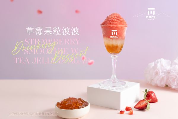 草莓果粒冰沙結合波波與綠茶凍,果香清新、層層咀嚼Q彈多變,呈現豐富卻不厚重的風味表現,是偏好多層次口感與果粒存在感的消費者首選。