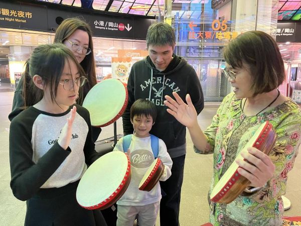 4.大人小孩敲起馬來鼓合奏「恭喜恭喜」樂曲,在節奏中拉近距離,感受多元文化魅力。